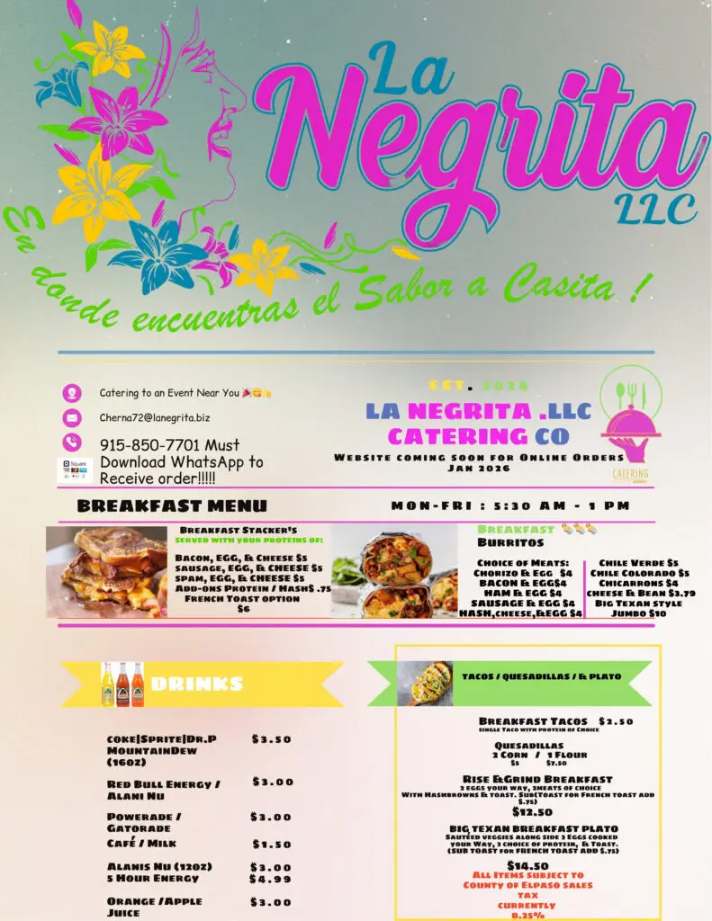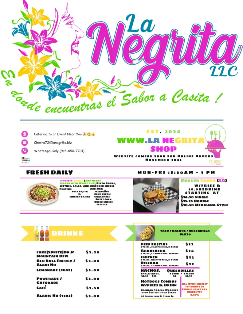 At La Negrita, every dish is prepared fresh with quality ingredients and attention to detail. We focus on well-balanced flavors, satisfying portions, and consistency you can count on—every visit, every order.